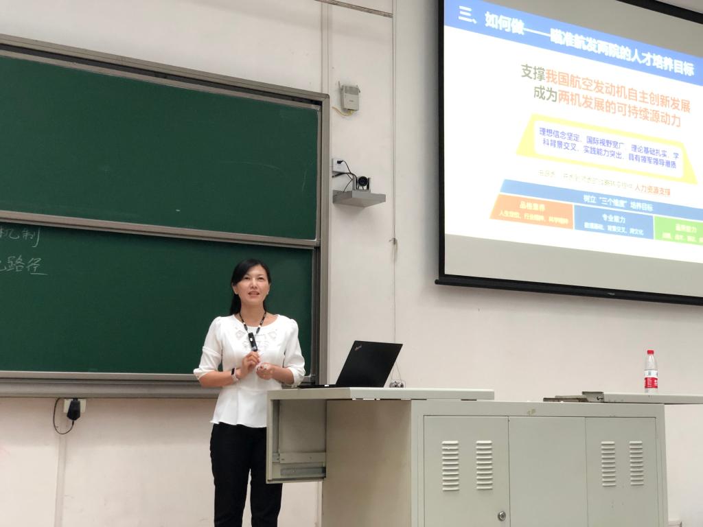 典礼之后,王文文为全体新生讲授“开学第一课”。王文文围绕“创新”这个主题,与同学们交流探讨了“为什么”、“做什么”、“如何做”这三个问题,介绍了航发院在体制机制、实施路径、模式方法上的创新探索,激发同学们主动思考自己在未来3到5年中的目标定位、研究规划及实现途径。在讲述“如何做”的部分,王文文通过讲述自己、北航校友、航发院教师和北航教授的四个真实故事, 提炼出“信念、担当、准备;时代、责任、梦想;机遇、开拓、坚韧;投入、创造”四组、十一个关键词,带领同学们更深层次地领悟了习近平总书记关于科技创新、抗疫精神以及青年成长的系列重要讲话精神,让大家更真切地感受到作为新时代青年大学生的使命和责任。