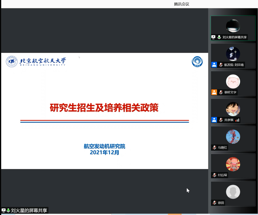 会议第四项,由航发院人才培养副院长刘火星解读研究生招生及培养相关政策。他类比国家、学校的文件,突出讲解新的政策变化及航发院制定的相关文件,并重点从招生环节、过程管理、导师队伍建设、论文质量提升几个部分展开具体解读,强调各位老师要充分学习了解新政策、做好新准备,为北航与航发院的高质量人才培养工作贡献力量。