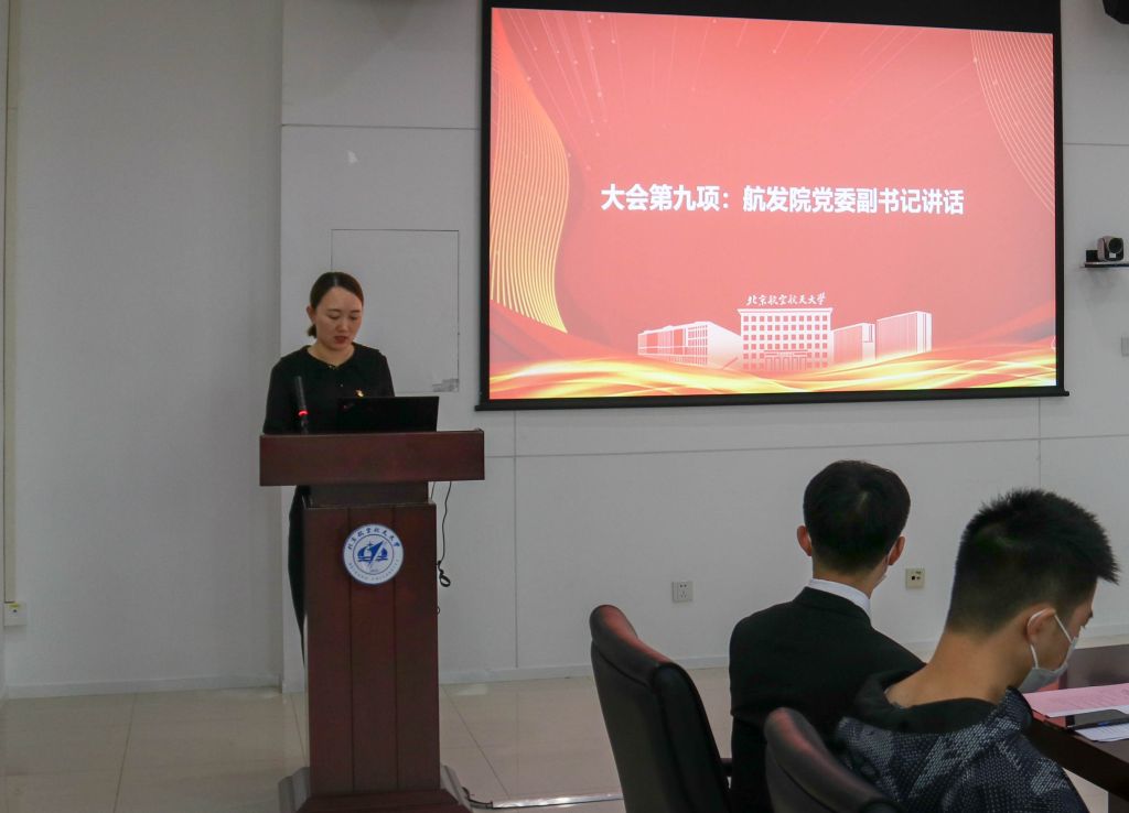 最后,航发院党委副书记刁旭代表航发院党委对大会的顺利召开表示热烈祝贺,指出在总结过去工作的同时,要继往开来,继续扎实推进各项工作,继续发挥好“自我教育、自我管理、自我服务”的职能。她强调,作为广大青年学生干部,大家就是要敢想、敢闯、敢干,更好地发挥在青年学生中的作用,努力把研究生会建设成为联系同学的牢固纽带、学生骨干的培养高地、充满关爱的温暖集体。